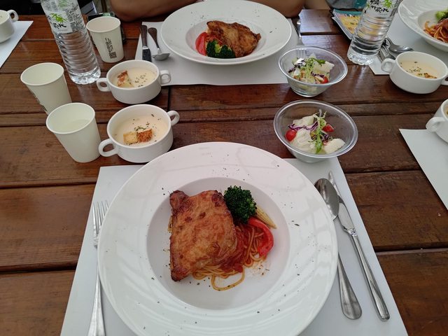 套餐有兩種,義大利麵或椒麻雞飯。份量適合女生,但不適合我。