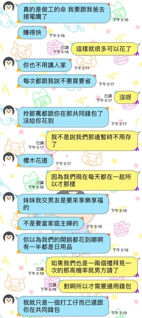 : 女友20還在讀書 家裡沒給錢 平常會打工每天兩三小左右
