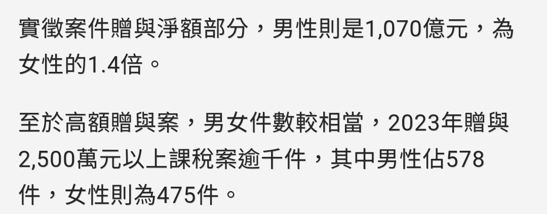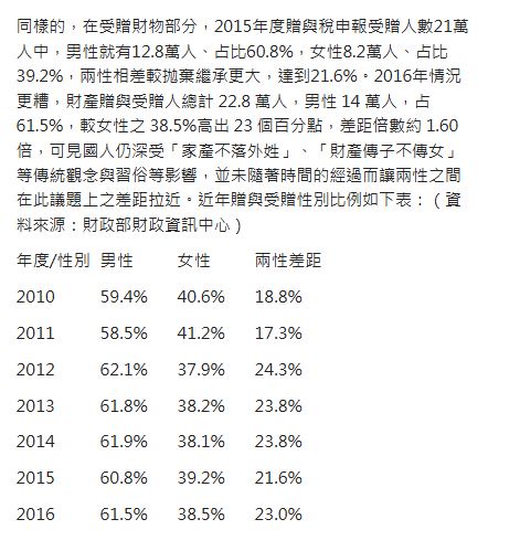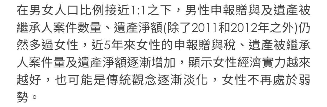→ Treeflaw : 篇最後一段說「男女繼承遺產比沒有逐年下滑」完全就 04/12 13:10