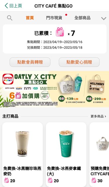 滿20點可以換一杯燕麥飲料