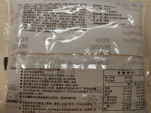 標題[商品] 全家 花生煉乳厚片/鮮露青茶