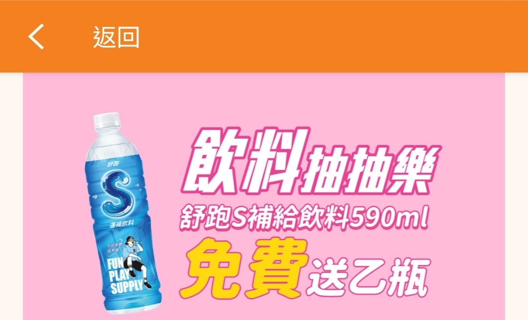 推 aappllee: 抽到一瓶運動飲料跟79折 07/17 13:16