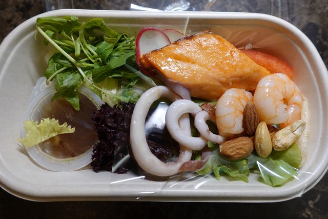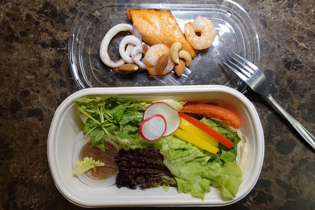 蝦子和魷魚圈沒有什麼腥味,鮭魚是用類似日式鹽烤的方式調味,我很喜歡。
