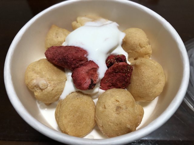 打開,看到小泡芙本體跟草莓果乾