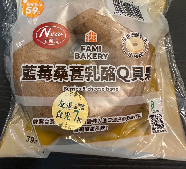【商品名稱/價格】:藍莓桑葚乳酪Q貝果/39元
