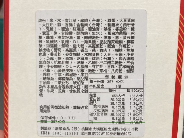【規格/內容物/熱量】: