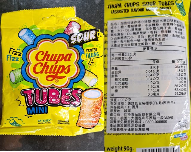 面的酸粉沒有很多不會很酸,水果味不錯是主流水果糖的口味沒有怪味,效期2024/6/6,
