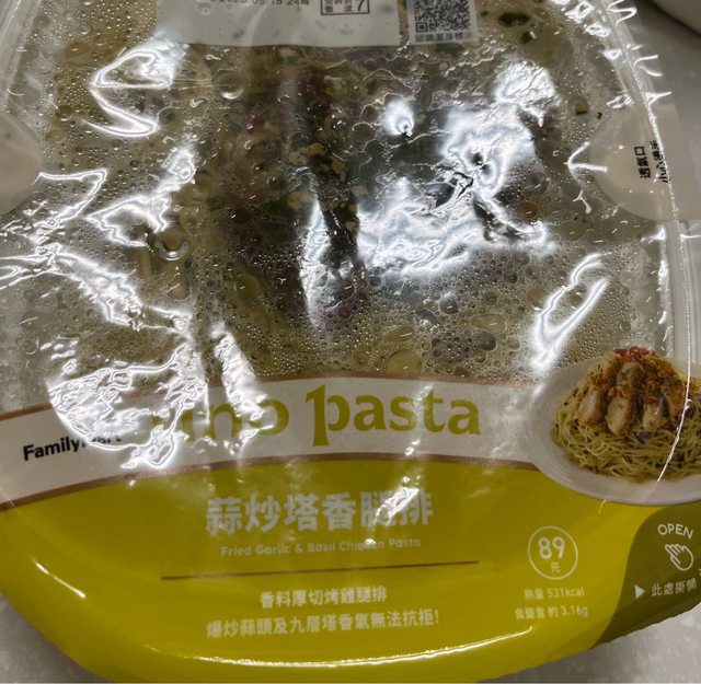 上次吃了全家的清炒義大利麵覺得還不錯,這次拿了一個比較類似的試試看