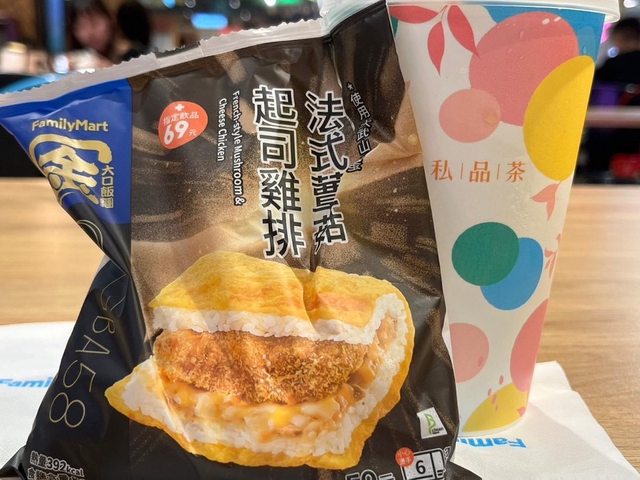 【商品名稱/價格】:法式蕈菇起司雞排大口飯糰+仙女紅茶69