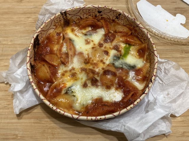 焗烤起司紅醬貝殼麵:食用前請攪拌均勻,羅勒的味道太濃太重了,我個人是沒辦法接受
