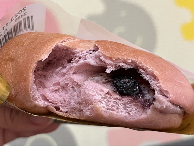 沒有包料只能咬貝果的只有一小段,其他到吃完裡面都是有藍莓醬加乳酪餡,比較大顆的