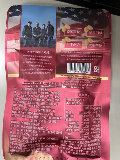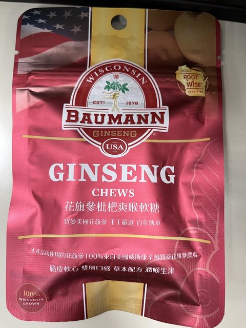 【商品名稱/價格】:寶曼花旗參枇杷爽喉軟糖 40元