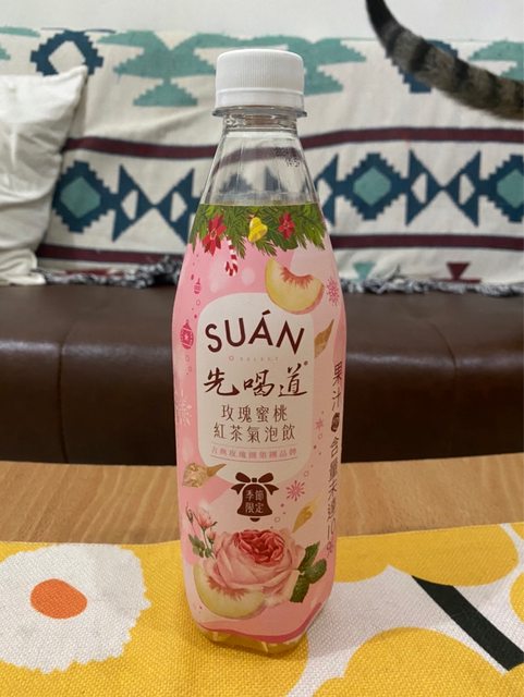 【商品名稱/價格】:SUAN先喝道 玫瑰蜜桃紅茶氣泡飲/35元