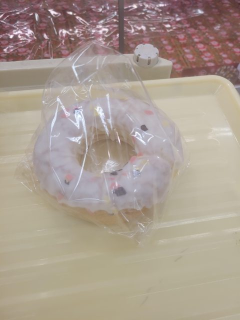 因為是路過買零食時順手在清倉區撈的,吃完才去架上拍的有點醜見諒,看起來是甜甜圈