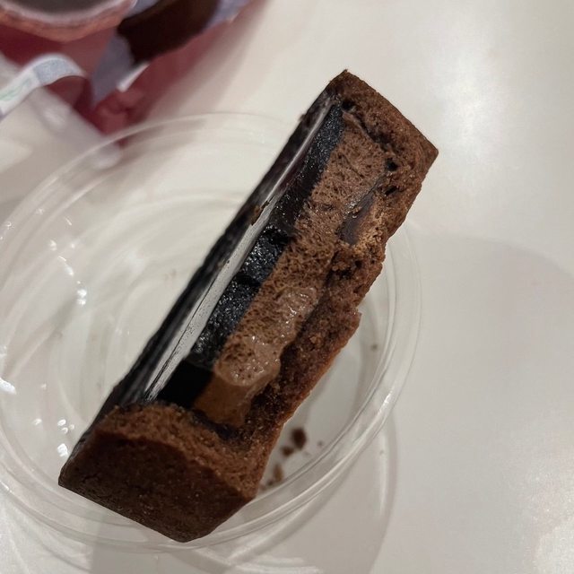上層是巧克力醬, 中間餡料有點像是提拉米蘇那種慕斯口感