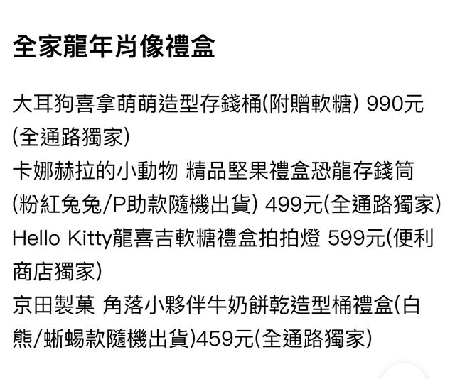 標題[情報] 全家 龍年禮盒(Kitty.大耳狗)