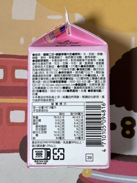 【商品名稱/價格】:蜜蜂工坊-蜂蜜草莓牛奶 原價39 新品特價35