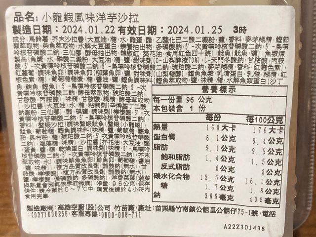 小龍蝦風味洋芋沙拉:統一超/高雄空廚竹苗廠