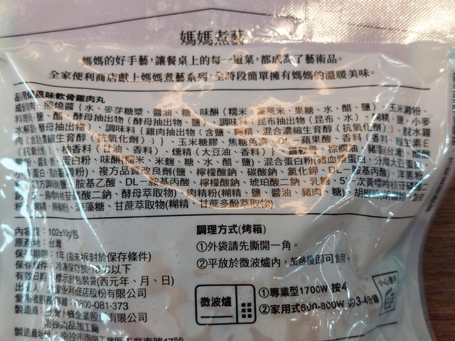 標題[商品] 全家 媽媽煮藝 照燒風味軟骨雞肉丸