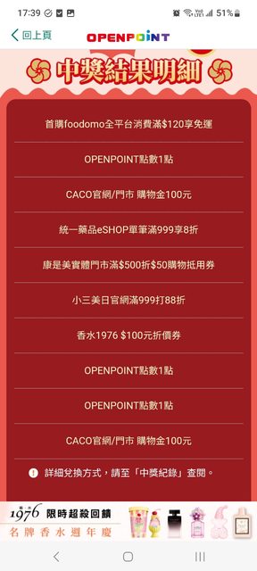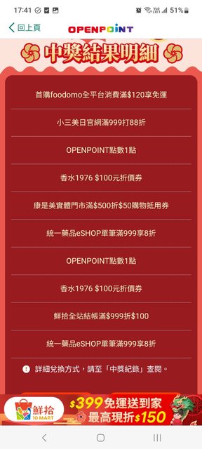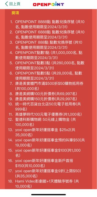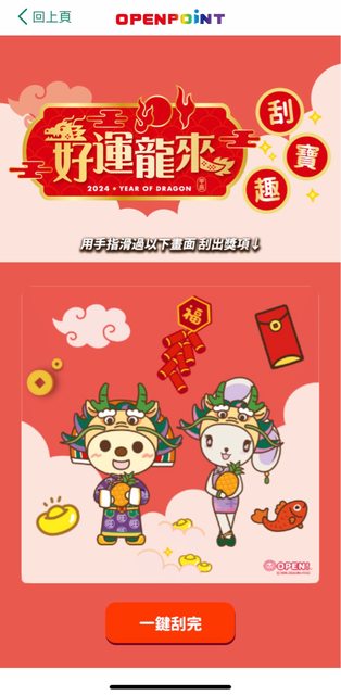 : : 2024/01/31 10:00~2024/02/27 19:00 OPENPOINT APP數位刮刮卡