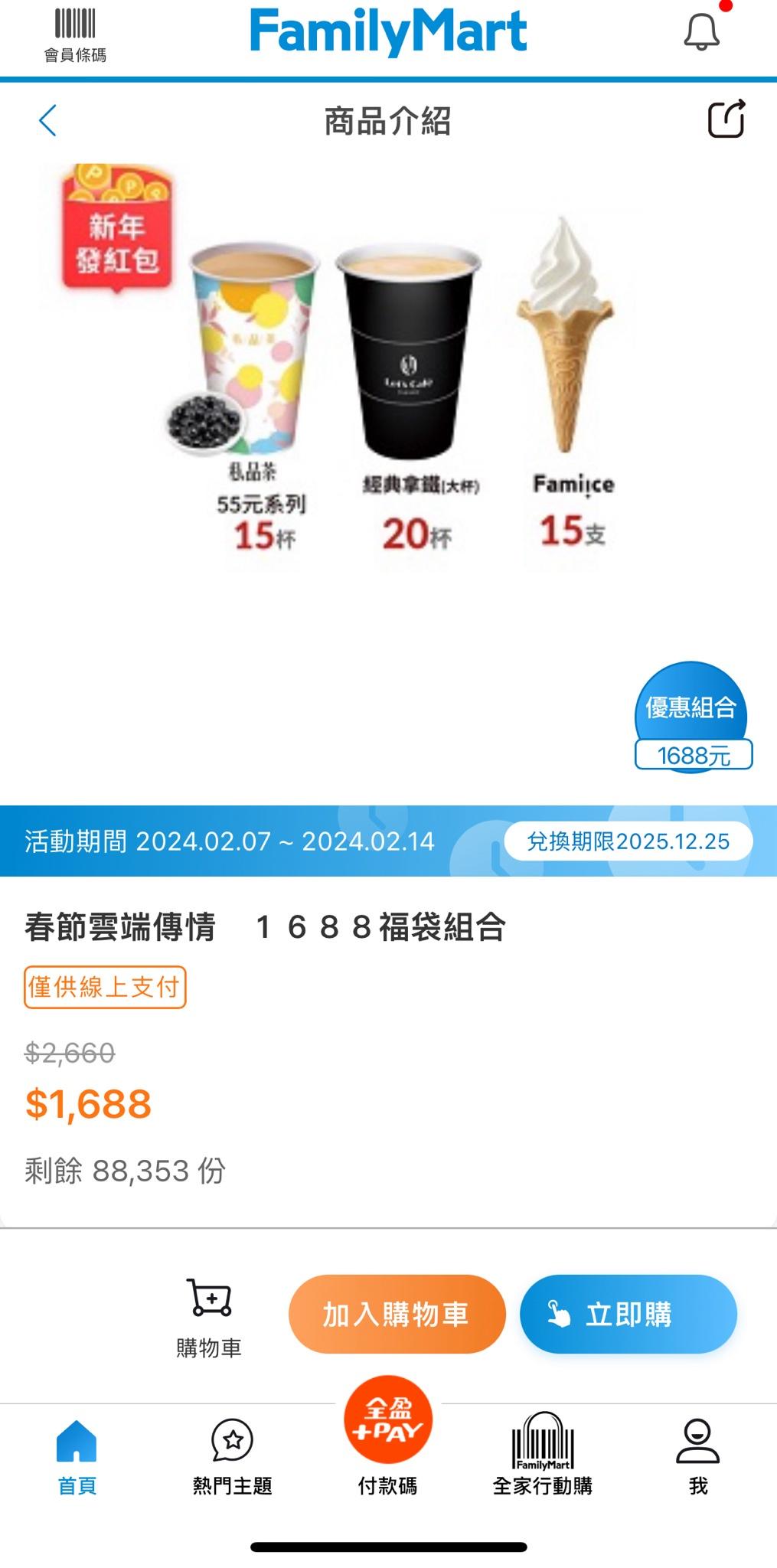 1,688元。(每位會員限購1組,兌換期限至114/12/25),此外,同時段於全家實體門市也