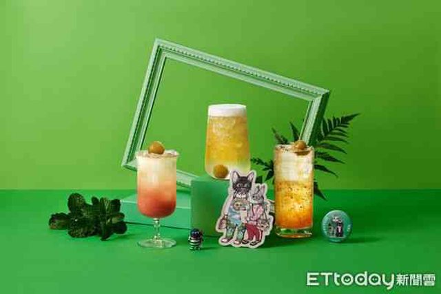 的HITOTSUME等通通放在手搖杯上,且角色還通通換上新衣,特別以台灣傳統印花、植物作