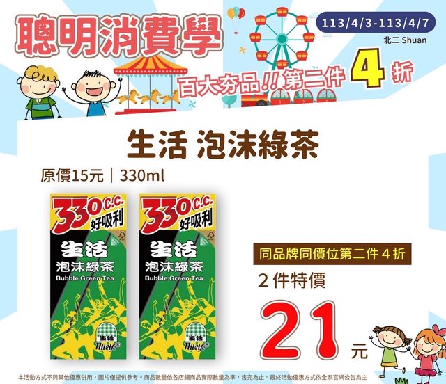 標題[情報] 全家 04/03~04/07 限時優惠+聰明消費學