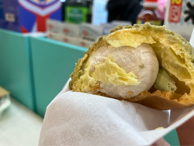 沒有感受到芋頭的甜度跟綿密感,抹茶餡倒是蠻搶眼的,不過泡芙沒有填得很滿,會有吃