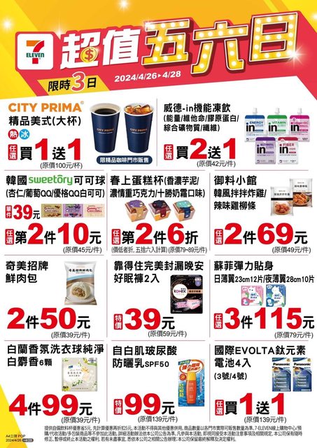 : 標題: [情報] 7-11 超值五六日 4/26~4/28