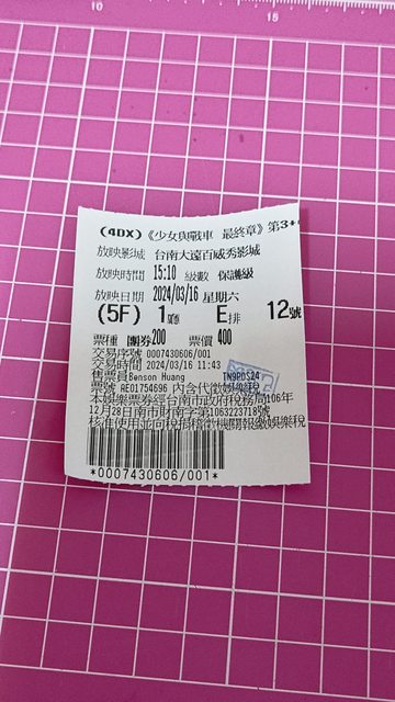 在開始前先放上票根,順便當防一下雷