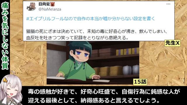 標題[閒聊] 藥師少女的獨語 貓貓為何愛吃毒?