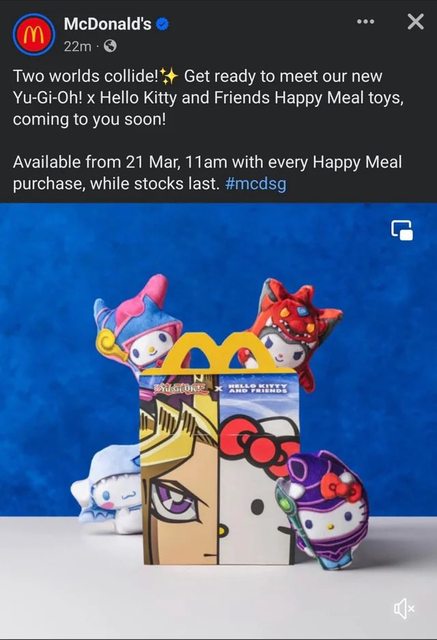 ベルギーのみで提供されていたマクドナルドの遊戯王×サンリオコラボですが、3月21日からシンガポールのハッピーセットでも提供されることが告知されました