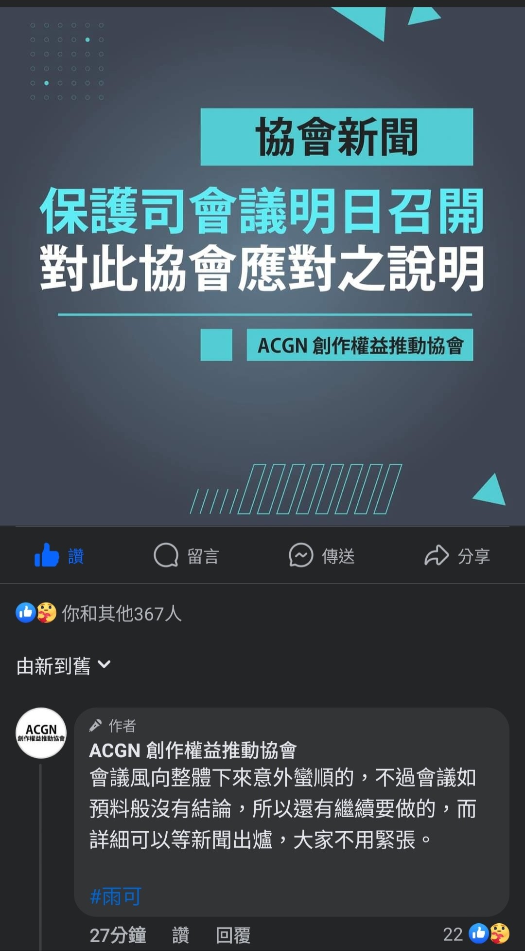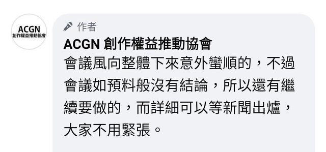 推 SonyXperiaZ3: 來自ACGN協會的FB留言:「會議風向整體下來意外蠻順 03/21 15:44