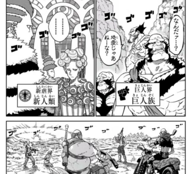 接續上一話大怪獸出現造成的震動也讓機律界、新虐界、巨人界的天敵有所感知