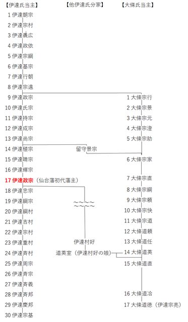 (隔有點久才發這個是因為剛剛在確認17代政宗到14代大條那條線