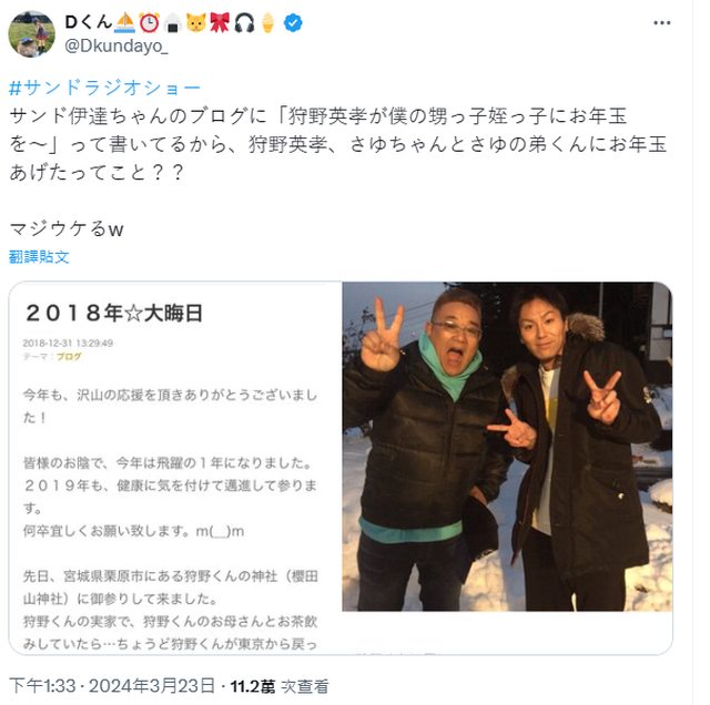 原來領過狩野英孝的紅包嗎