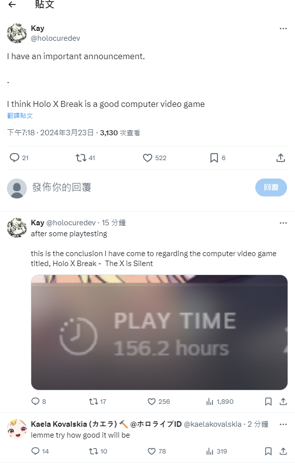 → none049: 「Holo X Break X不發音」是一款好玩的電腦影音遊戲(O) 03/23 19:32