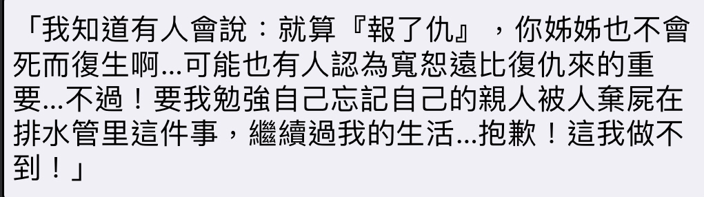 推 KaguraCat: 沒復仇一輩子走不出來 復仇至少出了一口氣 03/24 17:43