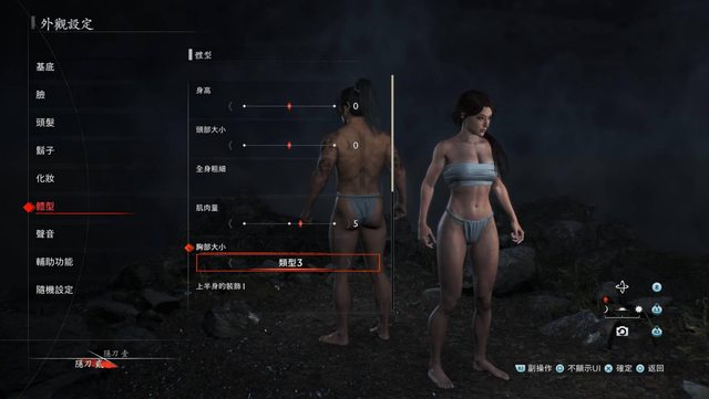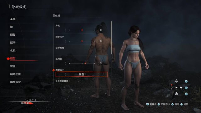 捏女角的時候有三個胸圍可以選