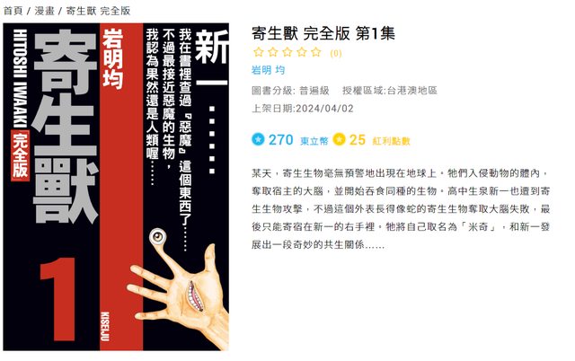 標題[情報] 寄生獸 完全版 下個月上架電子書