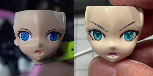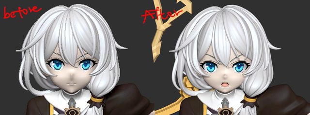 同時我們我覺得臉部表情過瘦 加上閉嘴很難表現出凶凶的感覺,因此我詢問是否能做出張