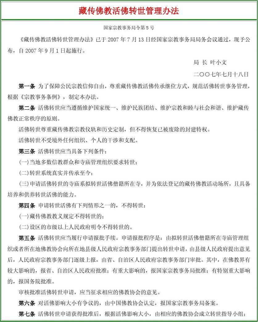 推 NKN: 中國共產黨對宗教的態度最好的說明就是"活佛轉世辦法" 03/28 21:03