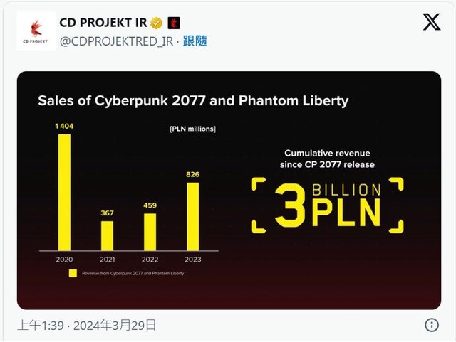 CD Projekt在3/29透過X宣布