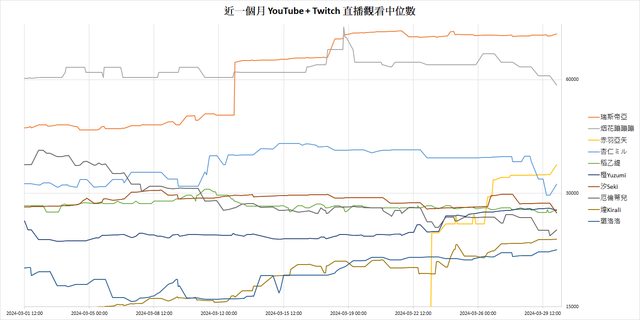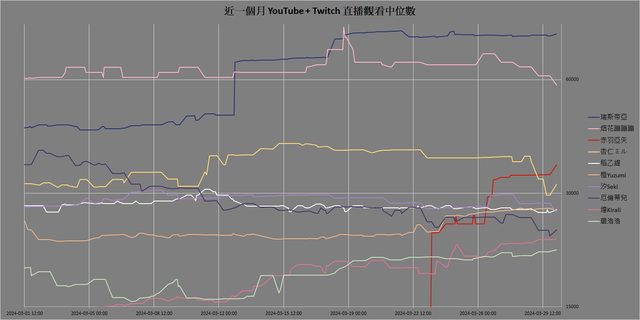 YouTube 直播觀看中位數 + Twitch 直播觀看中位數