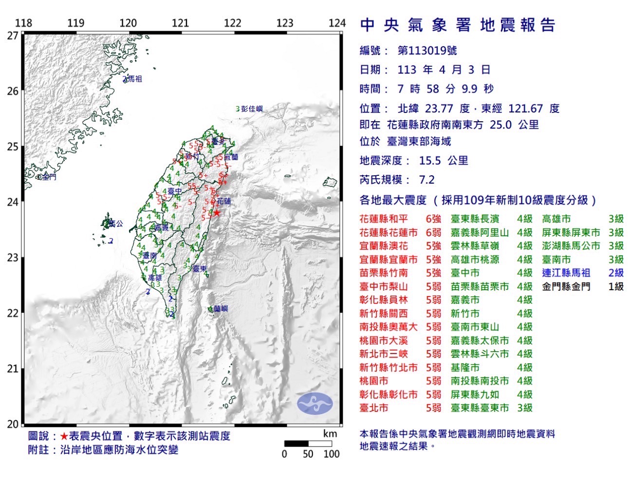 → ymsc30102: 台灣報告出來了 7.2 深度15.5km 04/03 08:17