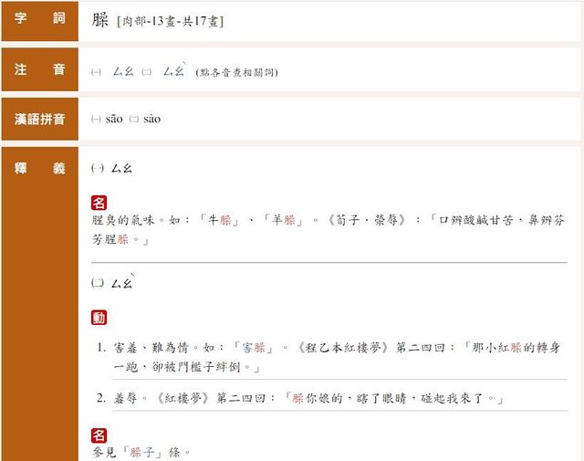 : 但我覺得正字應該還是「臊」