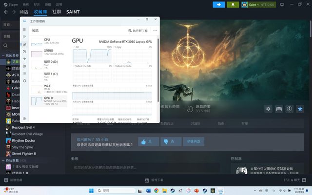 他怎麼會把我gpu吃滿啊??我記得之前我整個法環打完也都沒有特別卡的問題啊,頂多是