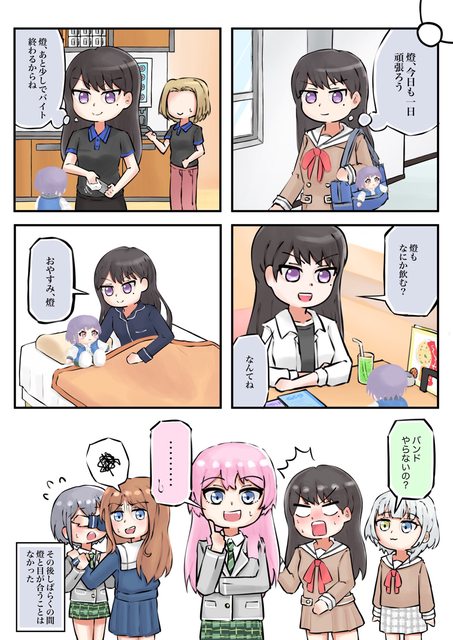 立希:今天一整天加油吧燈 再一下下打工就結束了喔燈 燈妳想喝什麼呢 燈 晚安 (在之後的幾天 立希都不敢正視燈)