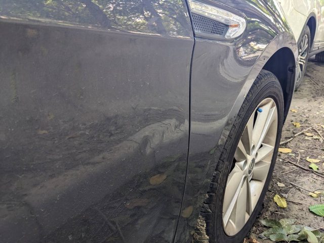副駕車門之前有擦傷重烤, 目前又有一點新痕跡...