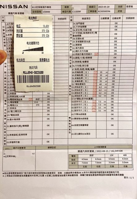 交車前她也有回原廠保養有檢查報告